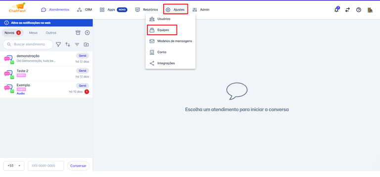 - Ter acesso à plataforma Chatfast com perfil de administrador.