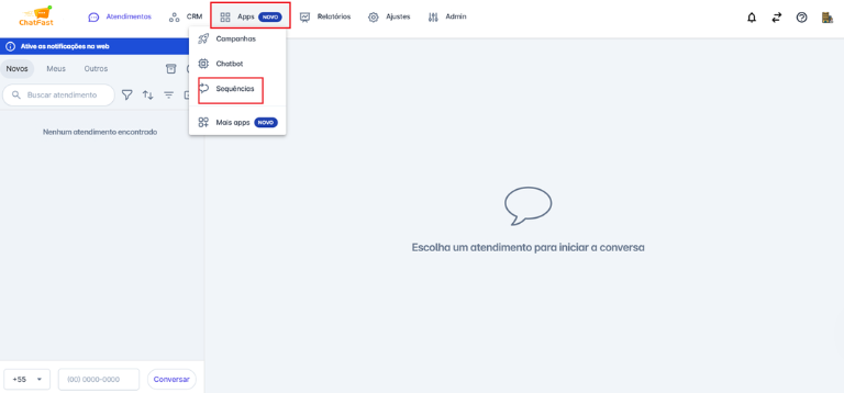 Passo 1: Na aba "Apps", selecione a opção "Sequências"