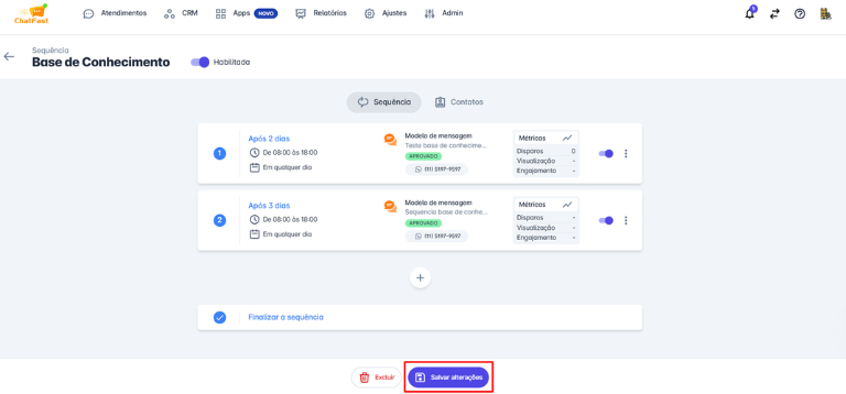- A inclusão e exclusão de contatos nas sequências é feita de forma manual.