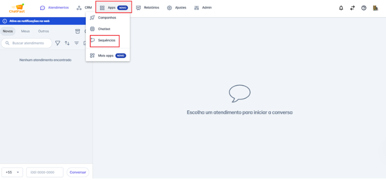 Passo 1: Na aba "Apps", selecione a opção "Sequências".
