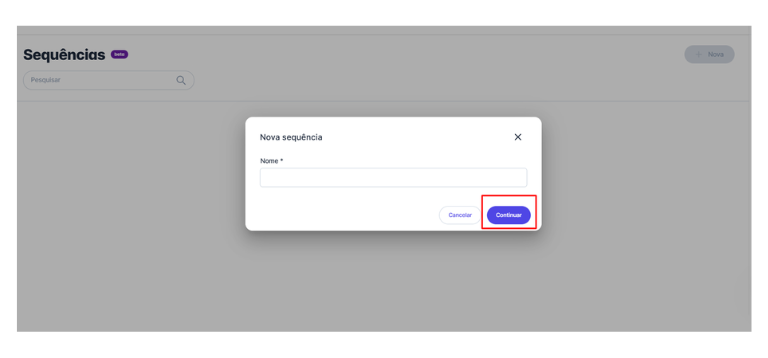 Passo 3: Um formulário será aberto para que você adicione o nome da sequência. Insira o nome desejado e clique no botão "Continuar".