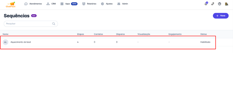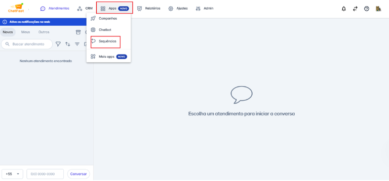Passo 1: Na aba de Apps, selecione a opção "Sequências".