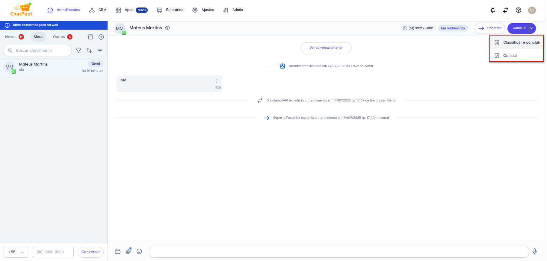 - Clique na conversa em uma das abas disponíveis (Novo, Meus ou Outros).