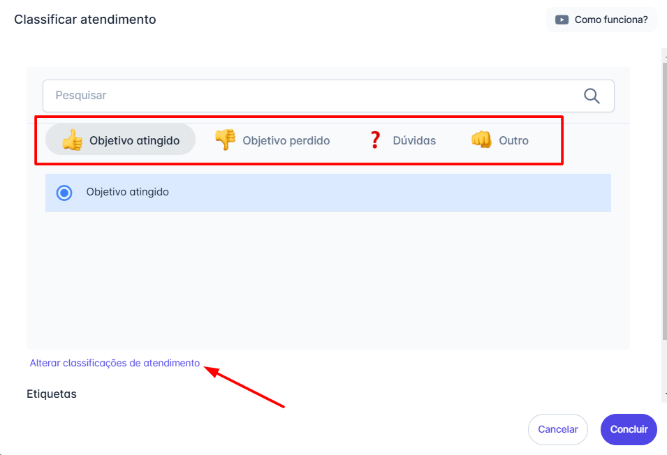- Opte por usar etiquetas quando for necessário visualizar a informação assim que a conversa iniciar. Se isso não for tão importante, considere criar um campo personalizado para salvar a informação do contato de forma mais estruturada.