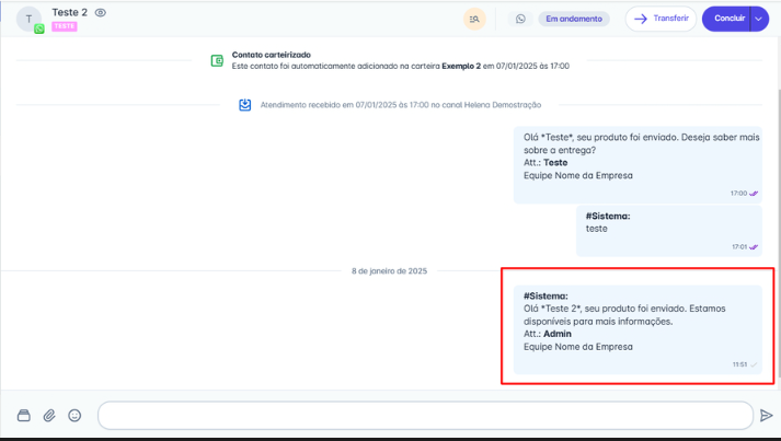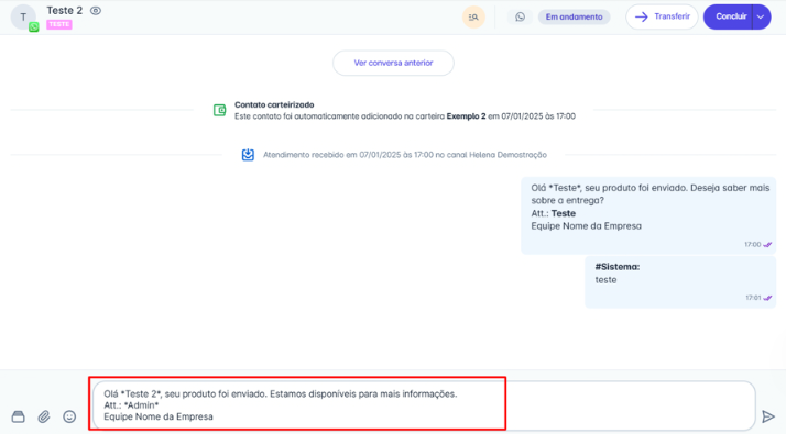 Passo 4: Após enviar o modelo de mensagem, ele será exibido na janela de conversa.