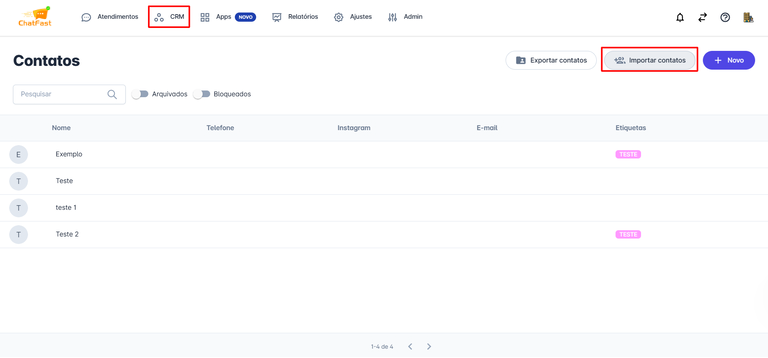 - Apenas usuários com perfil de administrador podem realizar a importação de contatos na Chatfast.