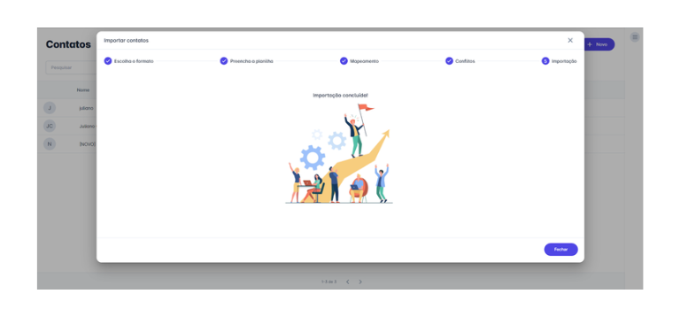 Passo 6: Se a importação for concluída com sucesso, basta fechar a janela de confirmação exibida na tela. No entanto, se ocorrer algum erro durante o processo, é importante verificar a fonte de dados utilizada, corrigir os problemas apontados pela plataforma e, em seguida, tentar realizar a importação novamente. Certifique-se de que os dados estejam no formato correto para evitar novas falhas.