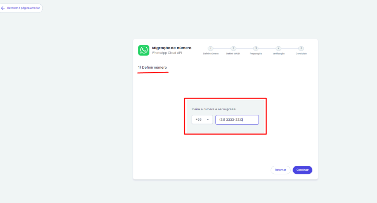 Passo 6: Digite o número a ser migrado e clique em continuar.