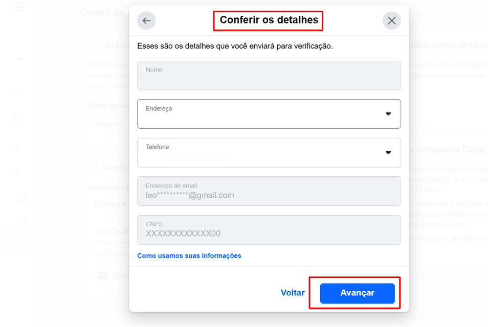 Passo 5: Após preencher todos os dados solicitados, clique em avançar.